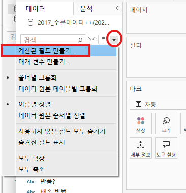 검색창 옆에 토글 클릭 -> 계산된 필드 만들기