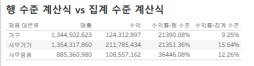 2. 행 수준 계산식 vs 집계 수준 계산식