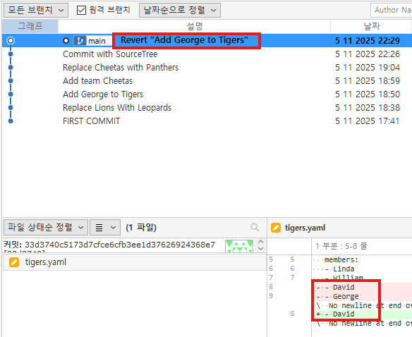 그럼 이렇게 새로운 커밋이 생겨서 George가 사라진 것을 확인할 수 있습니다.