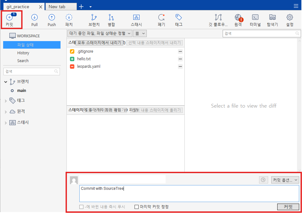지금까지 CLI에서 작업한 내용을 SourceTree로 해보겠습니다