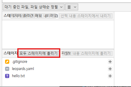 sourcetree에서는 모두 스테이지에 올리기를 통해서 add를 해줍니다