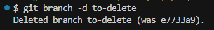 명령어를 실행하면 to-delete라는 브랜치가 삭제된 것을 확인할 수 있습니다