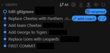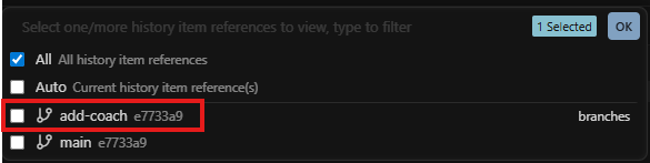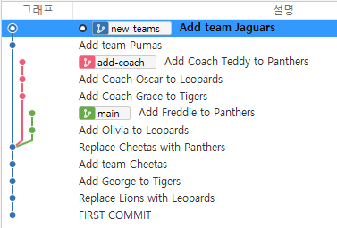 명령어를 실행하고 히스토리를 보면 add-coach라는 브랜치가 추가된 것을 확인할 수 있습니다