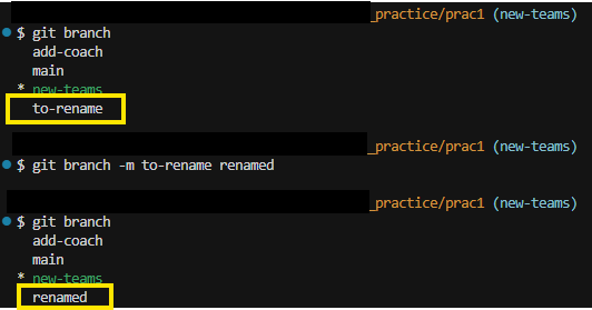 브랜치 이름을 변경하기 전에 to-rename이라는 브랜치를 생성해주겠습니다